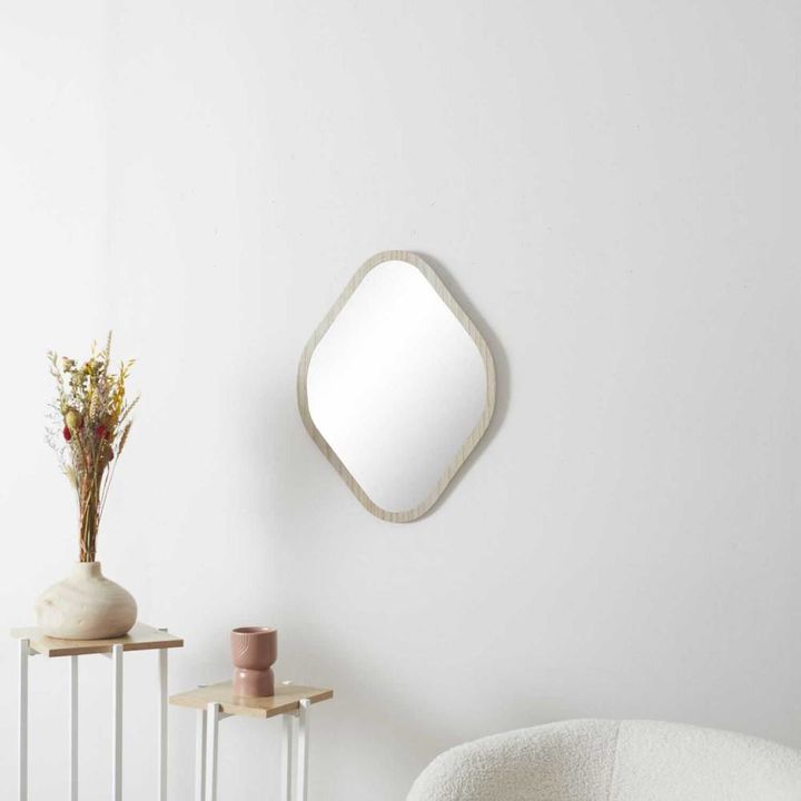 Espejo Decorativo Contorno Madera Rombo 60cm HD0115 Caracteristicas: Largo del Producto (cm): 44 Alto del Producto (cm): 60 Profundidad del Producto (cm): 1 Peso del Producto (gr): 780 Contorno: Madera Composición 1: Madera - MDF (50%) Composición 2: Vidrio - GLASS (40%) Composición 3: Metal - Acero...