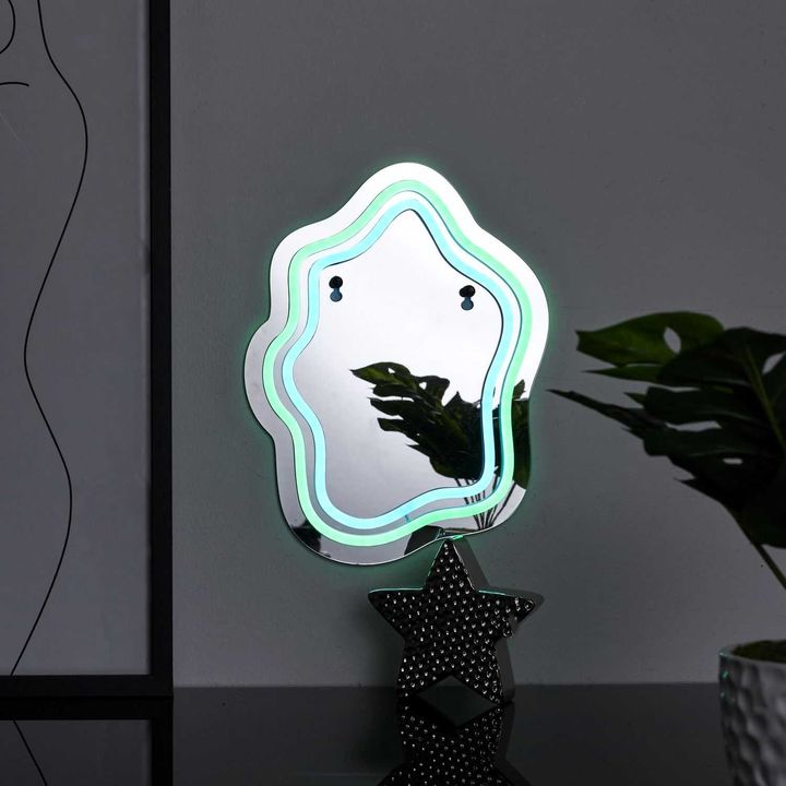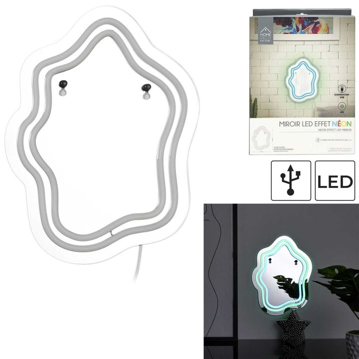 Espejo LED Efecto Neón USB Forma Irregular LA0090 Caracteristicas: Largo del Producto (cm): 22.5 Alto del Producto (cm): 20 Profundidad del Producto (cm): 1.6 Peso del Producto (gr): 150 Composición 1: Plástico - PS (77%) Composición 2: Plástico - TPR (27%) Carga USB Garantia: 6 Meses La presente pu...