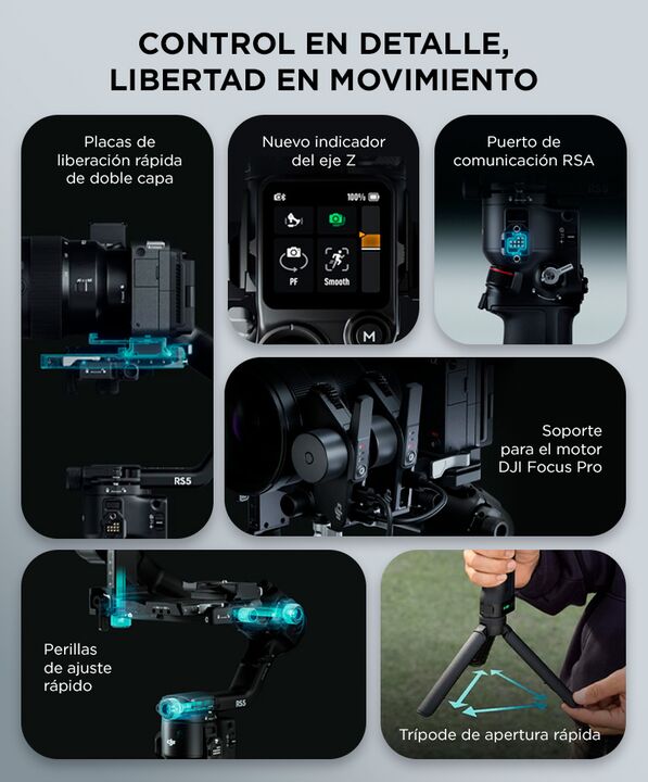 Estabilización profesional de 3 ejes: El DJI RS 5 ofrece movimientos fluidos y precisos para grabaciones cinematográficas. Ideal para producciones profesionales, publicidad y contenido audiovisual exigente. Alta capacidad de carga para cámaras avanzadas: Diseñado para soportar cámaras mirrorless y e...