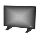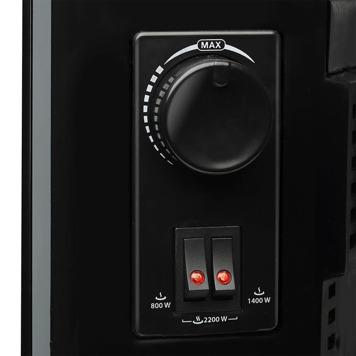 Frente de vidrio termotemplado decorativo. · Termostato regulable que ahorra energía. · Patas para ser utilizado sobre el piso o soporte de fácil montaje en pared. · Tres niveles de intensidad de calor. · Gran convección natural de calor. Totalmente seguro. · No consume oxígeno. · Corte de seguridad...