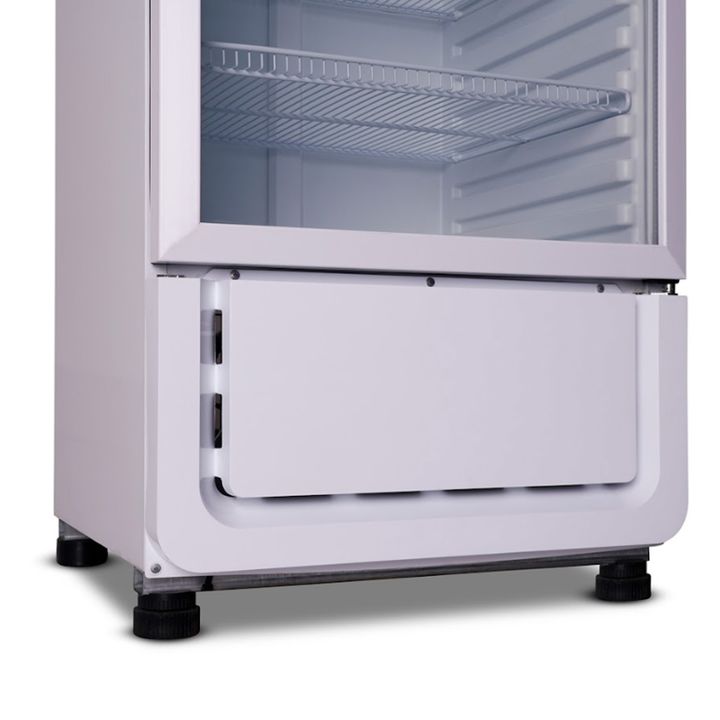 Compresor de última generación. Controlador electrónico de temperatura. Puerta doble vidrio exterior templado Low-e. Estantes con tratamiento anti corrosión. Condensación: aire forzado. Evaporador: aletado. Aluminio-aluminio. Condensador acero libre mantenimiento. Forzadores: polo de sombra. Condens...