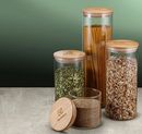 Juego de 4 tarros herméticos de cristal con Tapa de Bambú aportan funcionalidad y estilo a la cocina.