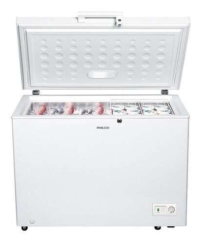 Freezer De Pozo Philco PHCH410BM **CARACTERÍSTICAS** • Capacidad Bruta 410L • Capacidad Neta 383L • Eficiencia energética A • 2 canastos removibles de 2 acero • Manija externa con cerradura • Luz interior LED • 4 ruedas para fácil traslado • Termostato externo regulable con triple función (freezer-c...