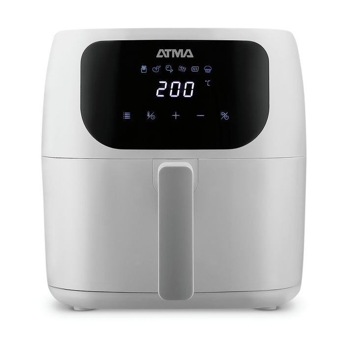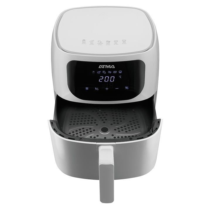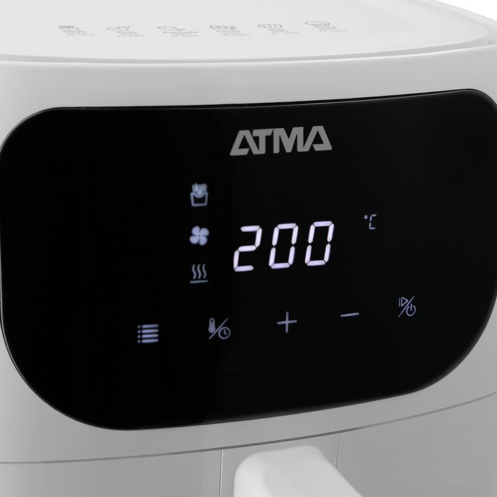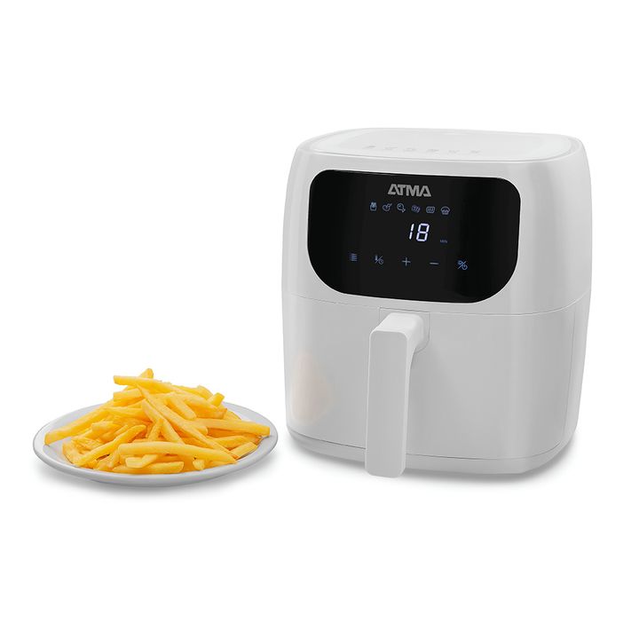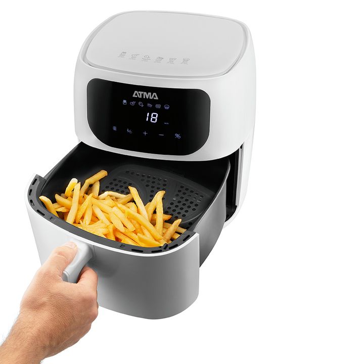 Freidora de Aire digital 1300W Atma 6,5 L FR60ARWP La freidora de aire Atma redefine la cocina saludable con su capacidad de 6,5 litros, ofreciendo espacio generoso para preparar deliciosas comidas con hasta un 80% menos de grasa. Equipada con 6 programas predefinidos (Bife, carne, chips, aves, tort...