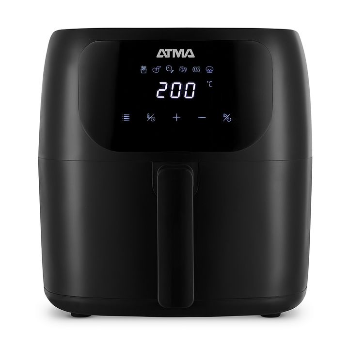 Freidora de Aire Digital 1300W Atma 6,5L FR60ARBP La freidora de aire Atma redefine la cocina saludable con su capacidad de 6,5 litros, ofreciendo espacio generoso para preparar deliciosas comidas con hasta un 80% menos de grasa. Equipada con 6 programas predefinidos (Bife, carne, chips, aves, torta...