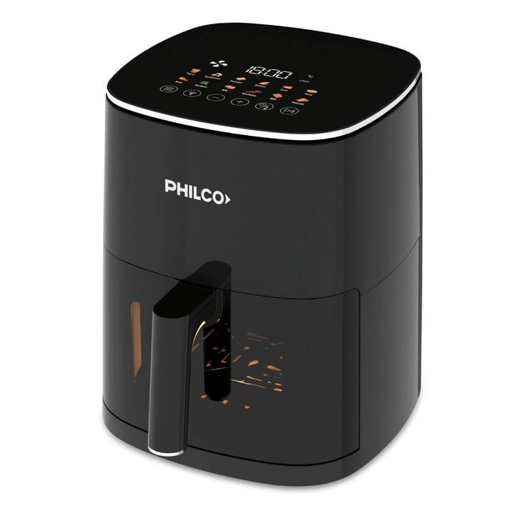 Freidora De Aire Digital 6 Lts Con Visor Philco Negra FR170PHP Características: •Capacidad 6 litros • Potencia: 1700W • Con ventana transparente •12 Programas de cocción • Canasto y rejilla antiadherente • Base Antideslizante • Rango de temperatura 80°- 200°C Garantia: 12 Meses La presente publicaci...
