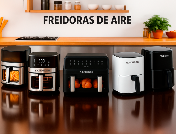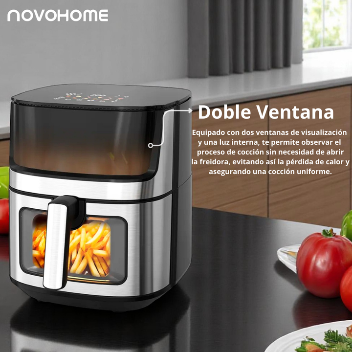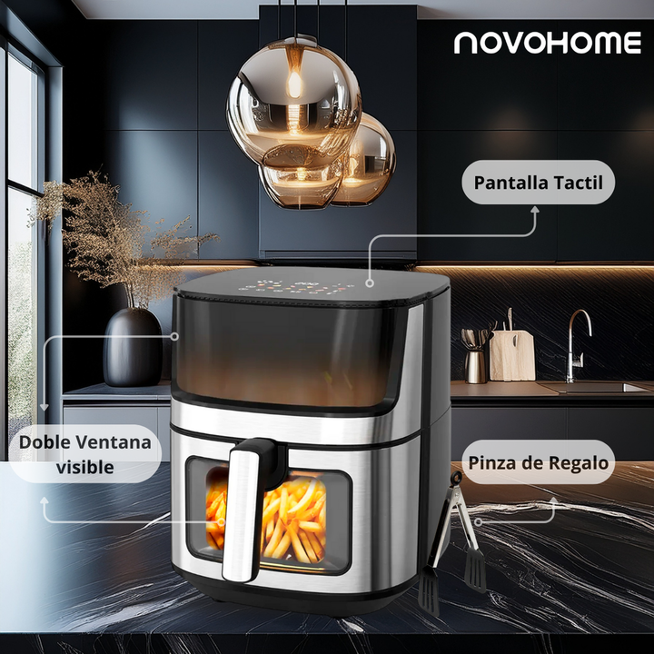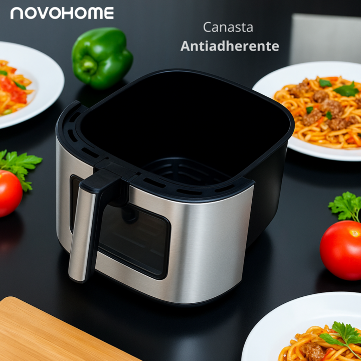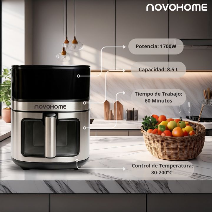 NOVOHOME AIRFRYER NF-AH 802WIX 8.5 LITROS 1700W SKU: NH-AF 802WIX TEXTURA CRISPY, SIN ACEITE Tecnología Fry Force 360: Cocina los alimentos de forma rápida y uniforme con poco o nada de aceite. Los alimentos quedan crujientes por fuera y jugosos por dentro mientras que se utiliza un 80% menos de gra...