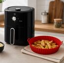 Freidora eléctrica sin aceite. Capacidad de 4.2 Lts. Canasto antiadherente. Regulador de temperatura 80 a 200º. Temporizador de 30 Min. Indicadores luminosos. Diseño moderno. Inluye molde silicona.