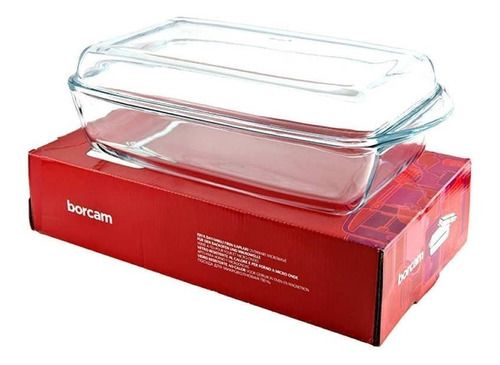 Fuente rectangular con tapa en vidrio para horno Resistente al calor vidrio BOROSILICATO. Medidas con la tapa : 28,5 x 16 cms x 10 cms de alto Altura de la base: 5 cms La tapa puede usarse como otra fuente aparte o como tapa. Volumen : 1300cc Apto para hornos convencionales , micro ondas , freezer y...