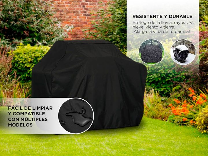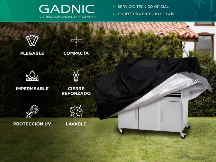 Protege tu inversión en parrilla con el protector de parrilla Gadnic. ¡Mantene tu parrilla como nueva y lista para cocinar en cualquier momento! Resistente al Agua y al Viento: Fabricado con una capa exterior de tela Oxford 210D y un revestimiento interior de plata UV, este protector ofrece una barr...