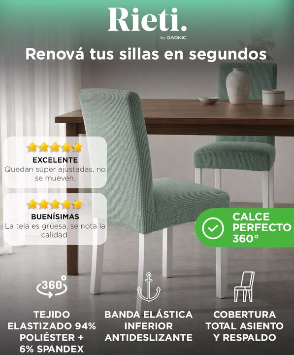 Calce elastizado 360° con ajuste firme: La funda cubre silla Rieti by Gadnic se adapta completamente al respaldo y asiento gracias a su tejido elastizado y banda inferior, evitando deslizamientos durante el uso. Tela jacquard gruesa de 210 gsm: Fabricada con material de alto gramaje, ofrece mayor re...