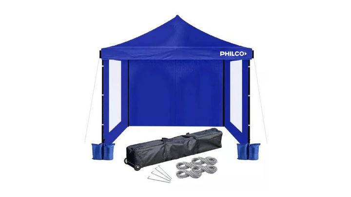 Gazebo 3x3 Philco Con Paredes Azul GAP3X3BW3P Caracteristicas: Accesorios: *Bolso de transporte *4 bolsas para llenar con arena *4 estacas *4 cuerdas Materiales: Tela resistente de poliéster 550D con recubrimiento PVC Oxford Impermeable Dimensiones: 310 x 290 x 290 mm Peso: 22 kg Garantia: 12 Meses ...