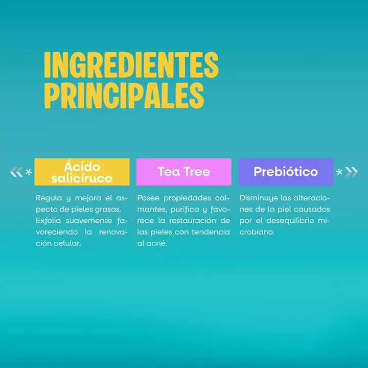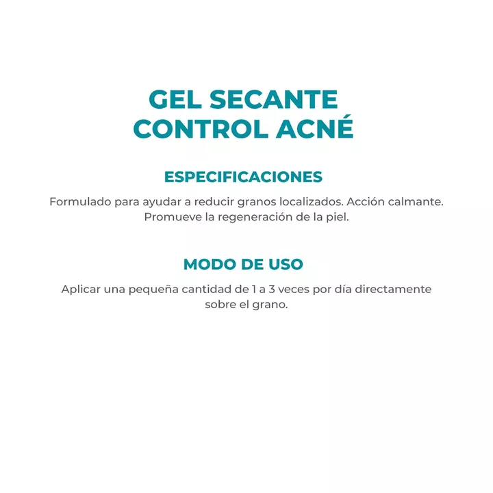 Formulado para ayudar a reducir granos localizados. Acción calmante. Promueve la regeneración de la piel.. Actúa sobre granos localizados. Hipoalergénico. Apto piel sensible. Testeado dermatológica y oftalmológicamente. No comedogénico. Sin TACC. Sin parabenos. No testeado en animales.