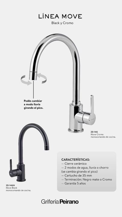 PEIRANO MONOCOMANDO DE COCINA CR LINEA MOVE SKU: 20-146 Descripción Los grifos de la marca Peirano tienen como respaldo más de 85 años de trayectoria en el rubro sanitario. Además, cuentan con calidad certificada ISO 9001. Este modelo Move 20-146 es una solución para darle un toque diferente a tu co...