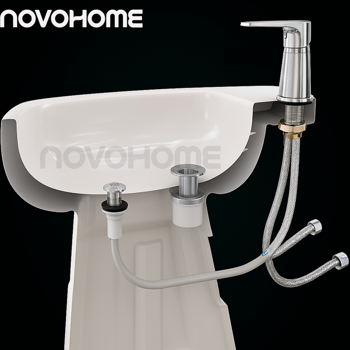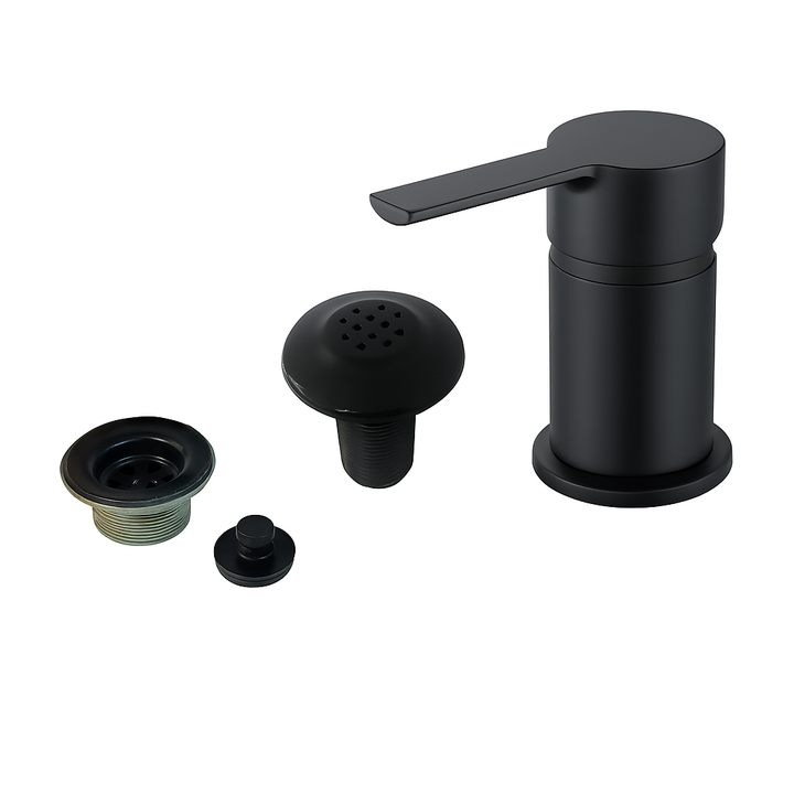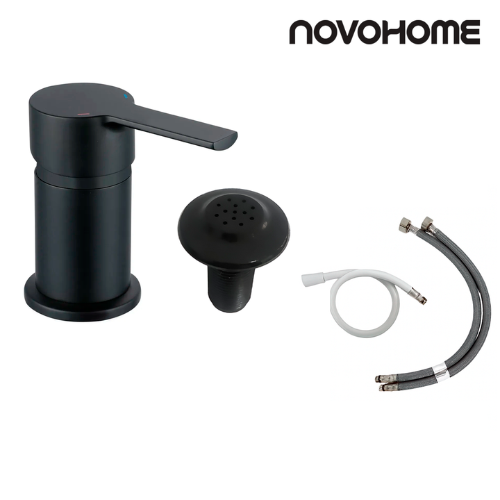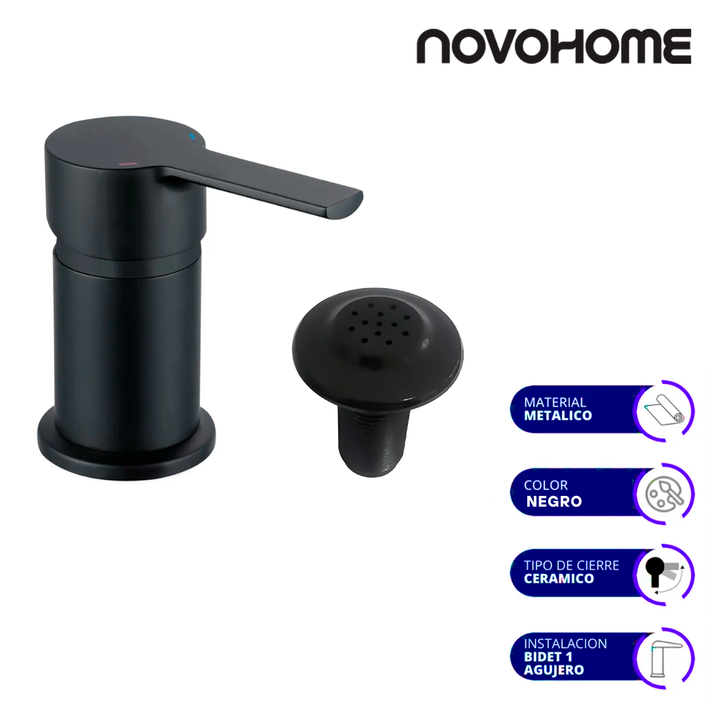 NOVOHOME GRIFERÍA MONOCOMANDO P/BIDET BLACK SKU: NH-GB27NG Grifo de lavabo, cuerpo SS304, cartucho cerámico de 35 mm, manija de Metal, manguera trenzada de 40 cm, con escurridor de lavabo y rociador. La grifería monocomando baja para lavatorio es una opción moderna y funcional diseñada para baños co...