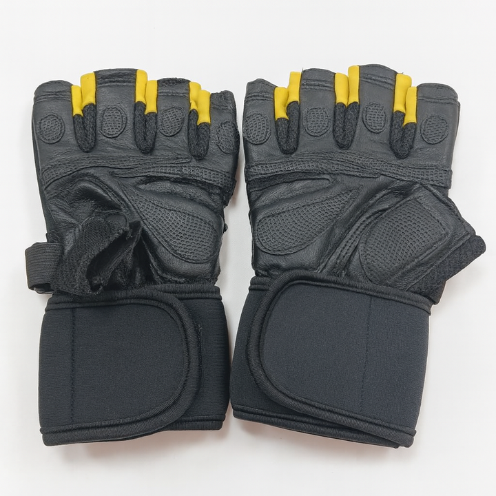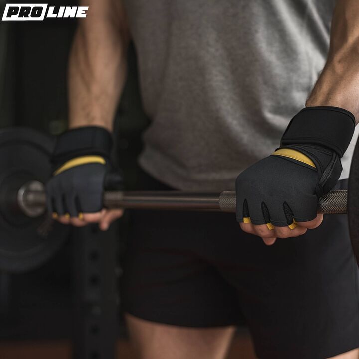 Guantes de Ejercicio Muñequera PROLINE Negro y Amarillo Dedo Corto Talle M GP-GUANTE02M-P Los Guantes de Ejercicio Proline de dedo corto en color negro y amarillo con muñequera talle M están diseñados para brindar mayor agarre, protección y comodidad durante el entrenamiento. Son ideales para gimnas...
