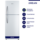 Heladera con freezer cíclica. Eficiencia energética A+. Color blanco. Gas R600a. Capacidad bruta 397 litros. Capacidad neta 395 litros. Deshielo manual. Estantes regulables en altura de vidrio en refrigerador y alambrón en freezer. Anaqueles en contrapuerta para botellas y alimentos regulables en al...