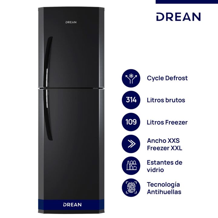 Heladera con Freezer Drean HDR320F50N: Diseño Black Steel y Máxima Capacidad La Heladera Drean HDR320F50N destaca por su estética sofisticada y su gran volumen de almacenamiento de 314 litros. Equipada con tecnología Cycle Defrost, este modelo asegura que tus alimentos mantengan su humedad natural, ...