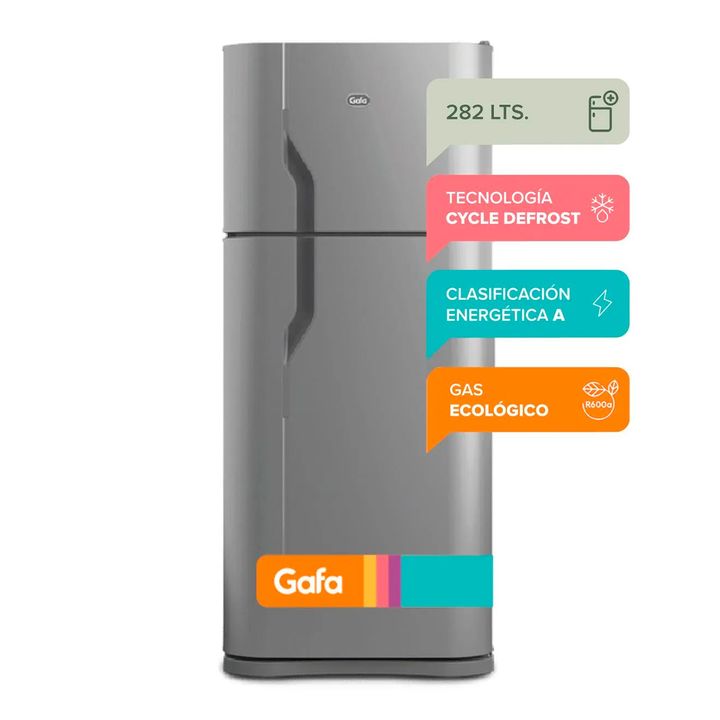 Heladera con freezer Gafa HGF358AFP Plata 282lts La Heladera con Freezer Gafa HGF358 AFP Plata con 282L de capacidad de almacenamiento, es la solución ideal para preservar alimentos y bebidas de todo tipo, de forma práctica y organizada. Su clasificación de Eficiencia Energética A, hace que la helad...