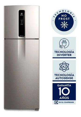 Heladera Electrolux Top Freezer No Frost Inverter Plata 408L - IF43S La Heladera Electrolux Top Freezer No Frost Inverter con AutoSense Plata 408L IF43S, posee mayor capacidad para preservar mejor tus alimentos y garantiza un menor consumo de energía. Su diseño moderno y elegante ofrece sofisticació...