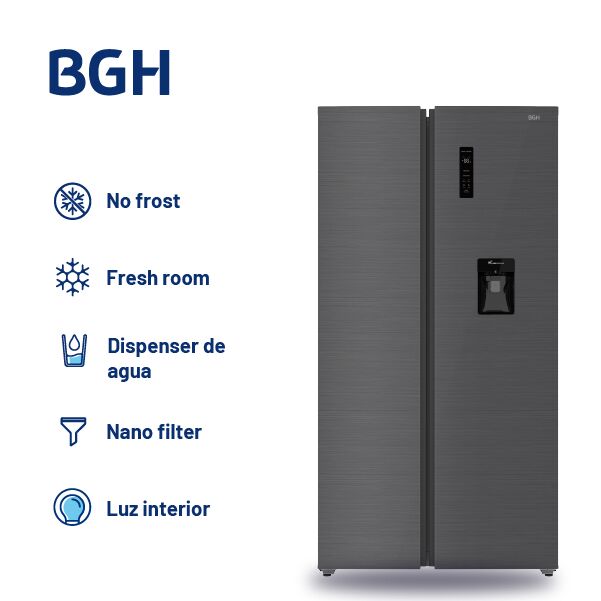 Heladera Side by Side BGH Inverter 534L BRS540I2A Máxima capacidad y sofisticación para tu cocina La BGH BRS540I2A es la solución ideal para quienes buscan diseño, tecnología y gran espacio de almacenamiento. Su sistema Side by Side permite organizar de forma cómoda todos los alimentos, con acceso p...