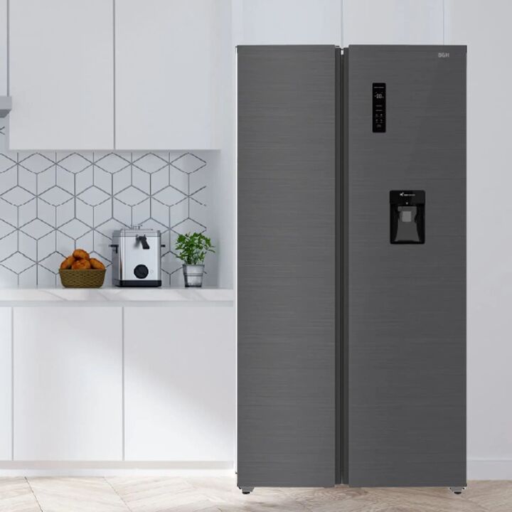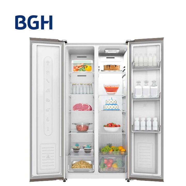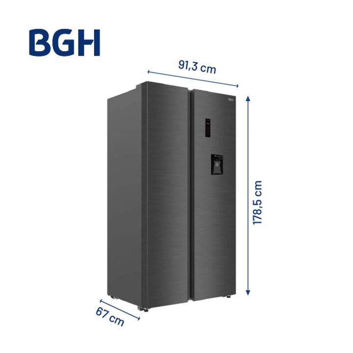 Heladera BGH Side By Side No Frost Inverter 534L Dark Inox (BRS540I2A) La Heladera No Frost BGH BRS540I2A es la combinación perfecta entre diseño sofisticado y máxima capacidad de almacenamiento. Con su formato Side by Side, esta heladera te permite organizar tus alimentos de manera funcional, tenie...
