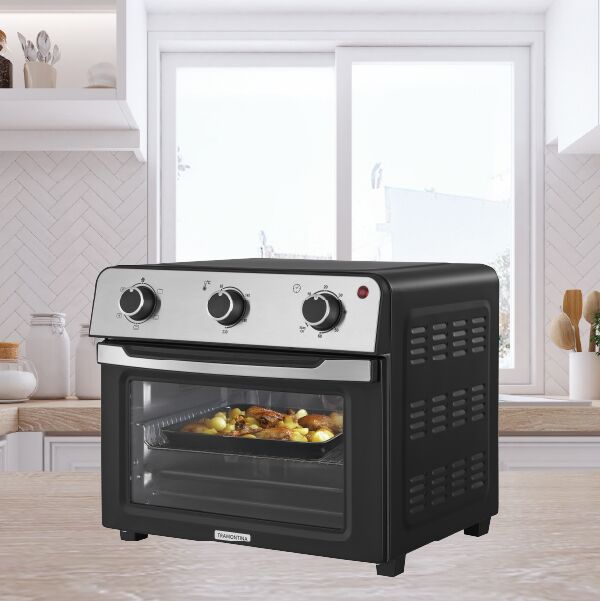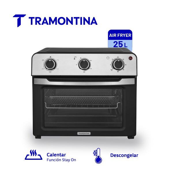 Horno Eléctrico con Freidora de aire TRAMONTINA 25 Litros Características principales: • Capacidad de 25 litros con diseño compacto • Función Air Fryer para cocinar con menos aceite • Potencia de 1500 W y sistema de convección • Ajuste de temperatura entre 65 °C y 230 °C • Temporizador de 0 a 60 min...