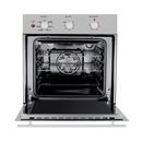 Horno eléctrico empotrable. Color steel. Capacidad de 60 litros. Encendido eléctrico. Puerta de vidrio panorámica. 2 parrillas interiores cromadas. Control de temperatura manual con perillas. Sus funciones de cocción son 6: Pre calentar, Hornear, Convección, Hornear, Asar, y Hornear y asar. Timer me...