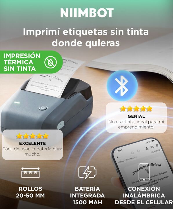Impresora Térmica Portátil Niimbot B1 Etiquetadora Rollos 20-50mm (Gris)