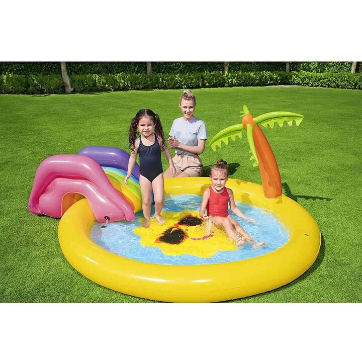 ...Características - Se infla y desinfla de forma sencilla para tener la piscina lista cuando lo necesites, además, cuando termine el verano puedes almacenarla de forma que no ocupe casi espacio- Válvulas de seguridad- Vinilo resistente y probado- El pulverizador de agua se conecta a la manguera de ...
