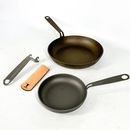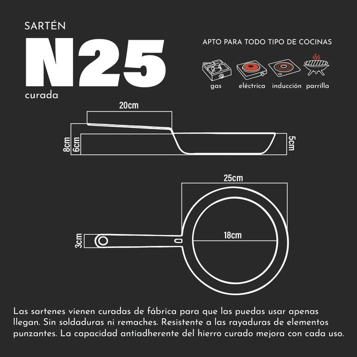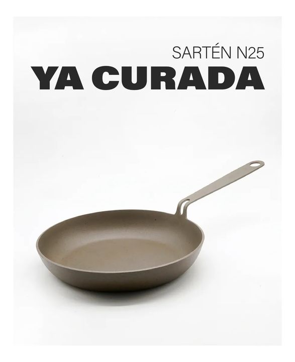 Combo sartenes de hierro Ya curadas incluye sarten N25 Sarten N15 mango de cuero y agarradera de acero inoxidable. Como el hierro fundido pero mejor. Nuestra sarten de acero al carbono mas vendida ahora viene CURADA para que una vez que te llegue la laves y empieces a usar. -100% de hierro -Fabricad...