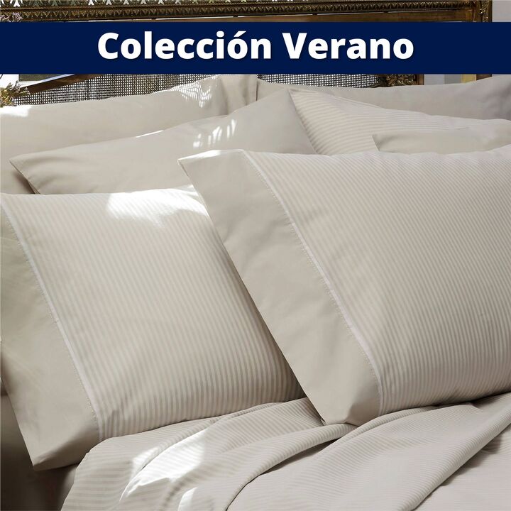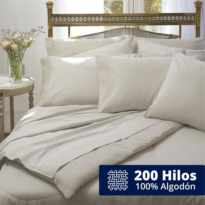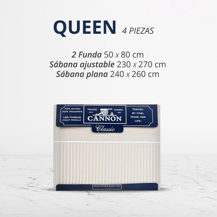 SÁBANAS CANNON 200 HILOS QUEEN 2 1/2 Plazas - Sabanas Queen Size (Cuatro Piezas) - Modelo Classic Rayado - Composición: 100% algodón - Cantidad de hilos: 200 - Colchones Queen Size de hasta 160cm (ancho) x 200cm (largo) x 0,35cm (alto) - Transpirable, duradera y cómoda - Fácil cuidado , apta todo ti...