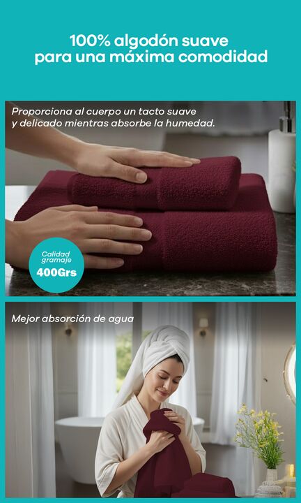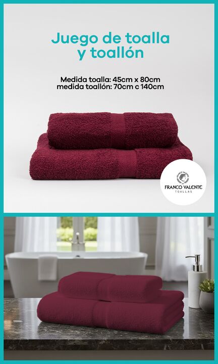 Set de Toallón y Toalla Franco Valente 400g Algodón - 100% algodón suave para una máxima suavidad - Materiales nobles y suaves - Proporciona al cuerpo un tacto suave y delicado mientras absorbe la humedad. - Mejor absorción de agua - Toalla: 45cm x 80cm - Toallón: 70cm x 140cm - Calidad gramaje: 400...