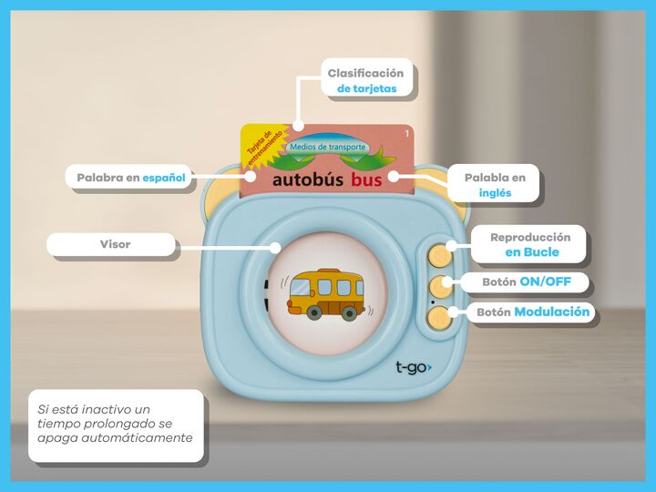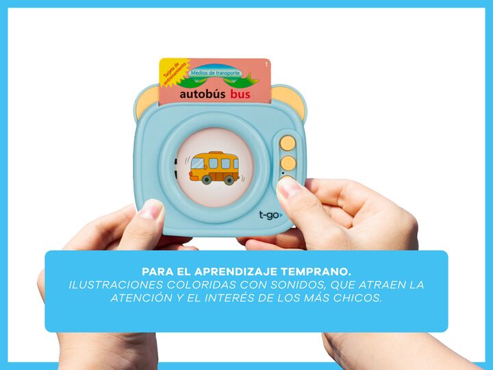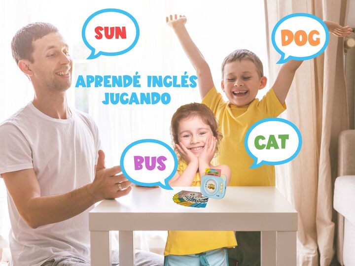 JUEGO ELECTRONICO PARA APRENDER INGLES JUGANDO -Compatible con el método de enseñanza Montessori. -Incluye 2 mazos con 56 cartas para incorporar o practicar 224 palabras. -Temas: vehículos, necesidades básicas, alimentos, vegetales, frutas, personas, colores, formas, prendas de vestir, profesiones, ...