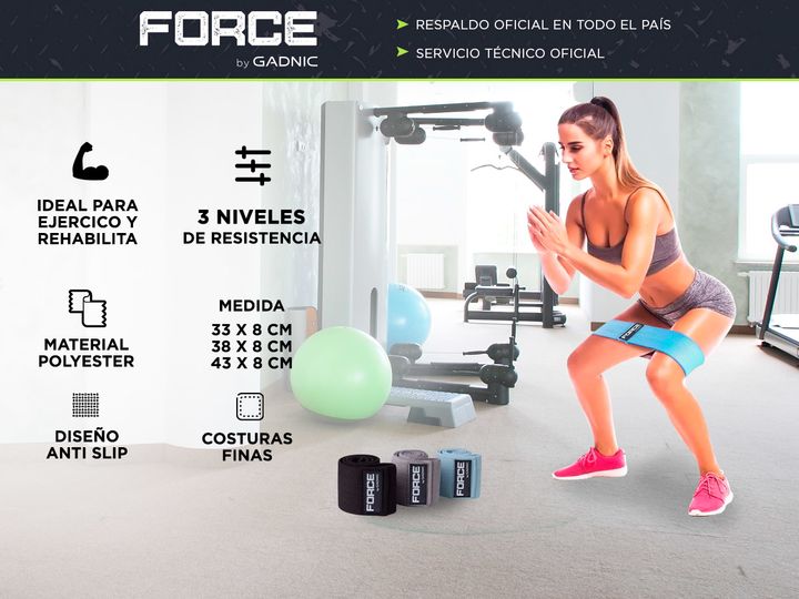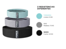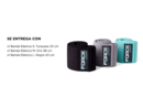 Especificaciones Bandas elásticas de diferentes intensidades 3 tipos de longitud dependiendo la dificultad que desees S: Turquesa 33 cm= 9kg M: Gris 38 cm= 15kg L: Negra 43 cm= 22kg Material: Poliéster Antideslizante: Sí Modelo ergonómico fácil de transportar Ideal para trabajar tus músculos en casa
