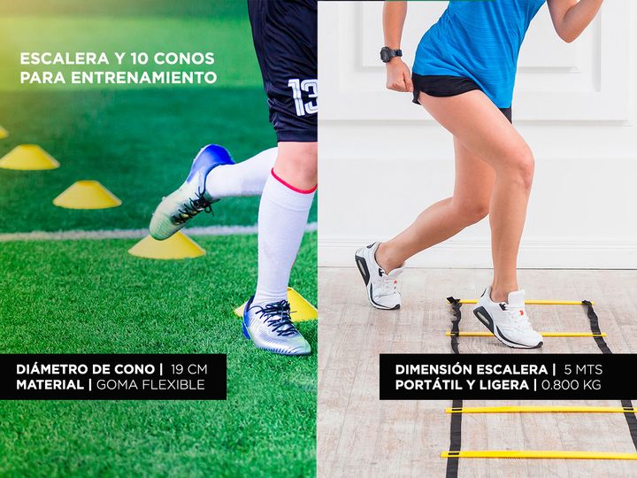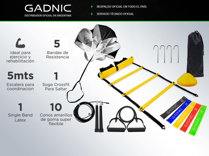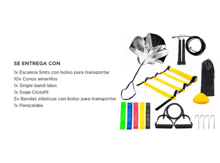 El Kit de Entrenamiento Gadnic: Banda Latex + 10 Conos + Escalera Fitness + Soga Crossfit + 5 Bandas de Resistencia + Paracaídas es perfecto para mejorar la velocidad, fuerza y agilidad. Ideal para entrenamientos de alta intensidad, permite trabajar diferentes áreas del cuerpo con múltiples ejercici...