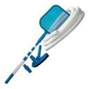 Set de limpieza para pileta de lona. La caja incluye: 1 barral extensible de hasta 1,60 mts. | 1 barrefondo | 1 sacahojas | 1 manguera de 6 mts. | 1 adaptador