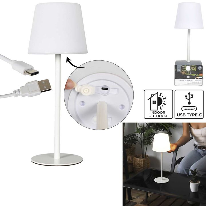 Lámpara de Mesa Recargable Blanca LAO0187 Caracteristicas: Largo del Producto (cm): 15 Altura del Producto (cm): 40 Profundidad del Producto (cm): 15 Diámetro (cm): 15 Peso del Producto (gr): 630 Composición 1: Plástico - PE (80%) Composición 2: Metal - Hierro (15%) Composición 3: Plástico - ABS (5%...