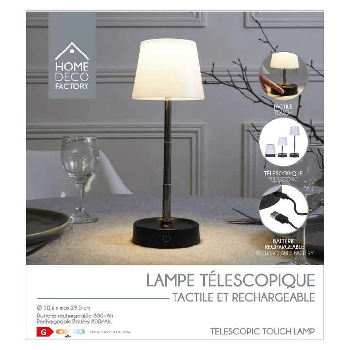 Lámpara Telescópica Táctil Recargable LA0085 Caracteristicas: Largo del Producto (cm): 10.6 Altura del Producto (cm): 29.5 Profundidad del Producto (cm): 10.6 Peso del Producto (gr): 170 Composición 1: Plástico - ABS (100%) Voltaje (V): 5 Tiempo de Carga (H): 1.5 Autonomía (H): 2 Características Adi...
