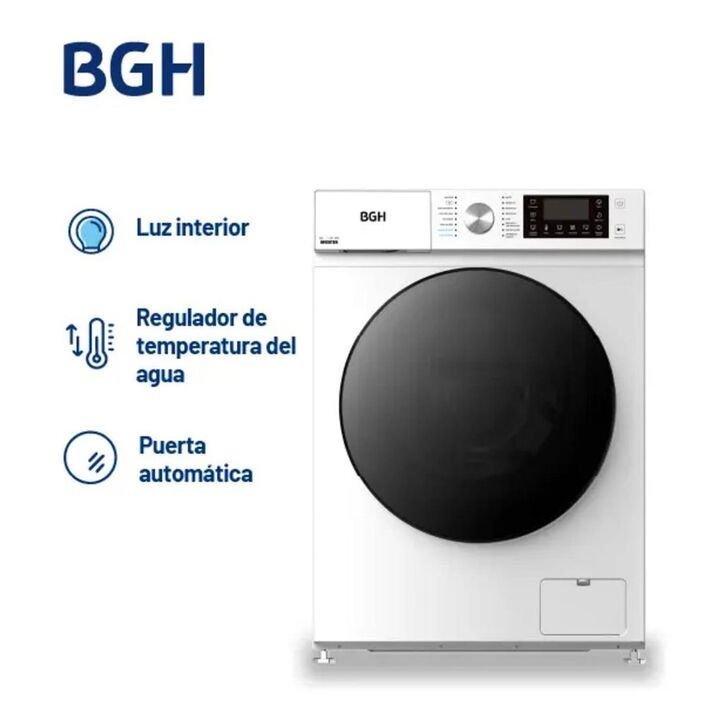 Descripción : El lavarropas BGH modelo BWFS09W25AR Inverter de 9 kg es una solución pensada para quienes buscan mayor capacidad, eficiencia y tecnología en el lavado diario. Su diseño de carga frontal permite un uso cómodo y optimiza el consumo de agua, mientras que su motor Inverter garantiza un fu...