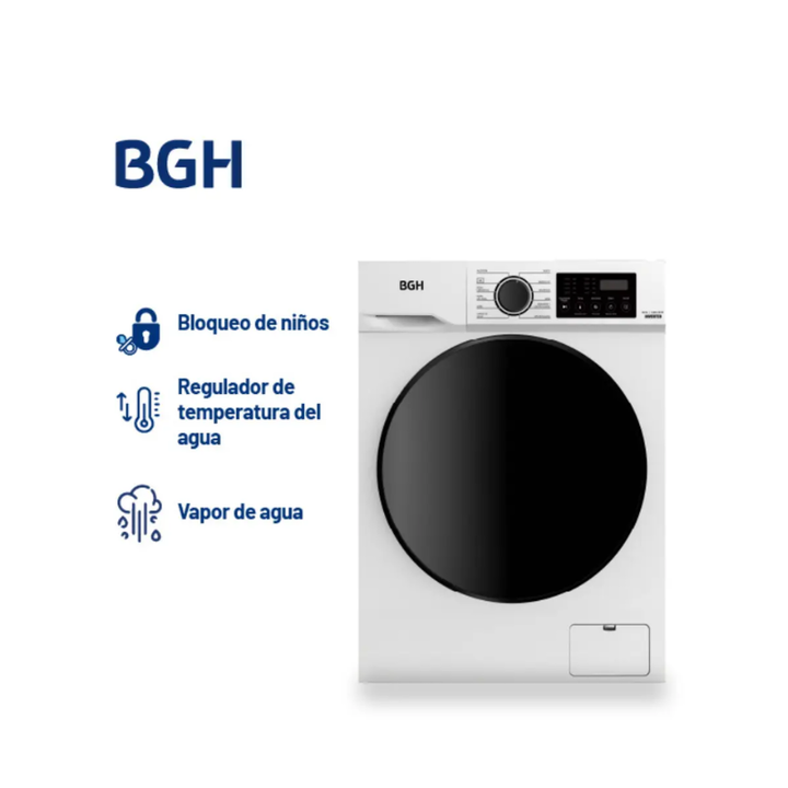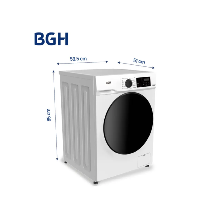 El Lavarropas BGH Automático Carga Frontal 8Kg A Inverter 1400RPM Blanco BWFE08W24AR combina eficiencia energética A+++, un motor inverter silencioso y duradero, y una capacidad de 8 kg ideal para familias medianas. Su diseño frontal con panel digital y 15 programas de lavado permite adaptar cada ci...