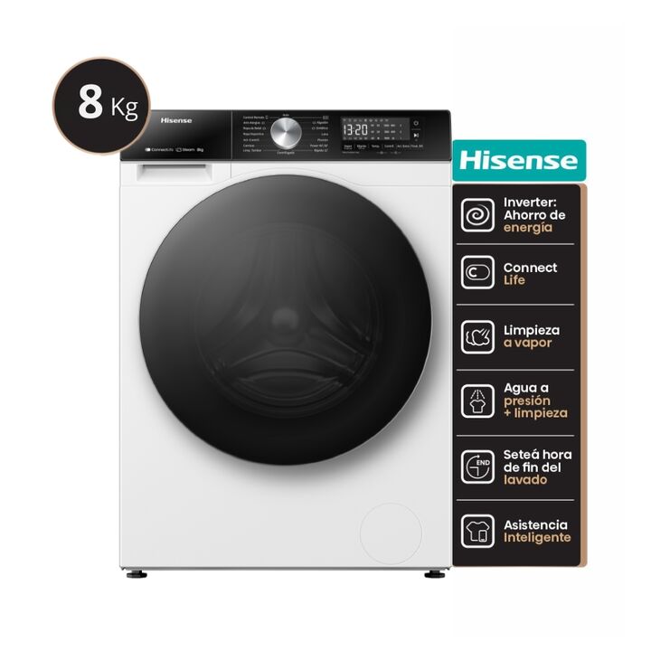 Lavarropas Hisense Inverter 8kg Smart 3S Blanco WF3S8043BW ¡Liberate de las pilas de ropa sucia con el Lavarropas Automático Inverter Smart 8kg 3S Hisense Blanco! Este lavarropas de 8kg es perfecto para tu hogar, combinando eficiencia energética A+++ y un sistema de lavado europeo que cuida cada pre...