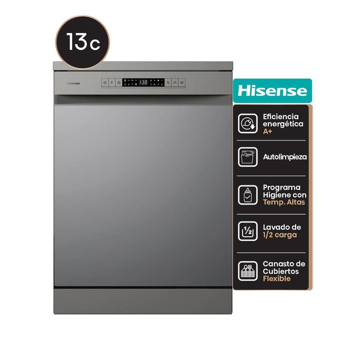 Lavavajillas Hisense 13 Cubiertos Gris El lavavajillas Hisense HS622E90S es la solución ideal para quienes buscan eficiencia y comodidad en la cocina. Con una capacidad para 13 cubiertos, este modelo de color gris se adapta perfectamente a cualquier hogar, ofreciendo un diseño elegante y funcional. ...