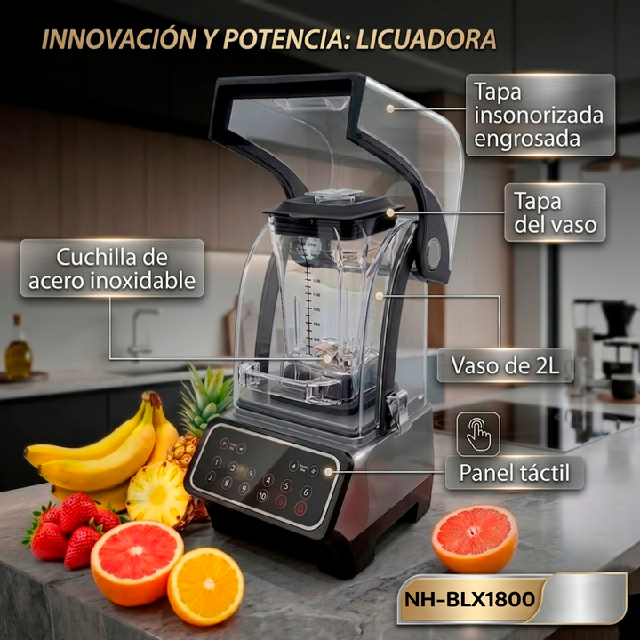 NOVOHOME LICUADORA INDUSTRIAL PROFESIONAL 1800W 2 LTS SKU: NH-BLX1800 Licuadora Industrial Profesional 1800W – 2 Litros Diseñada para entornos exigentes y de alto rendimiento, esta licuadora industrial de 1800W combina potencia, durabilidad y precisión para ofrecer resultados consistentes en cada us...