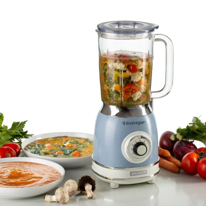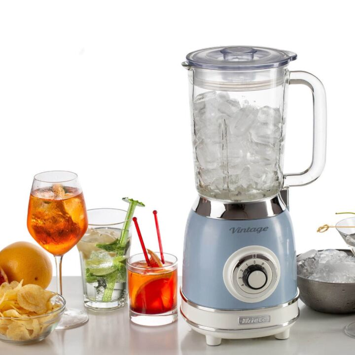Vaso de vidrio de 1,5 litros. 4 Velocidades + Pulso con función triturador de hielo. 4 Cuchillas de Acero Inoxidable. ¿Un batido energizante, un batido cremoso o un granizado refrescante? Con la batidora Ariete Vintage con vaso de cristal, puedes preparar la bebida que prefieras a diario, mezclando ...