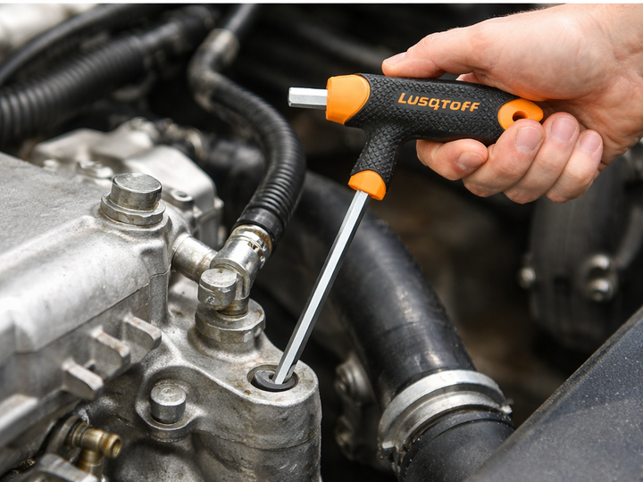 LLAVE ALLEN HEXAGONAL CON MANGO EN T LÜSQTOFF L6814 DE 8X200MM L6814 • Llave allen hexagonal de 8 mm. • Mango en forma de T con comfort grip. • Material de CR-V (acero al cromo vanadio). • Mango construido en TPR + PP. Garantía 6 meses