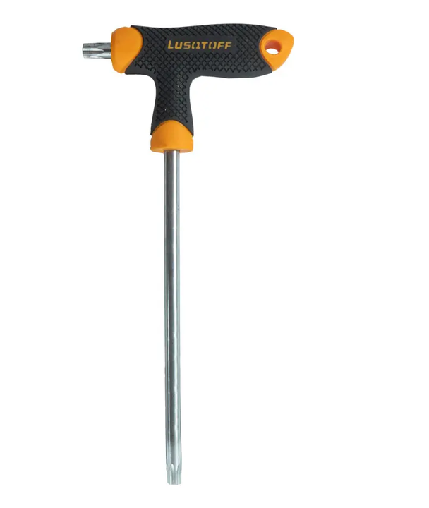 LLAVE TORX TAMPER T40 CON MANGO EN T LÜSQTOFF L6862 DE 150MM L6862 • Llave TORX Tamper Resistant T40. • Mango en forma de T con comfort grip. • Material de CR-V (acero al cromo vanadio). • Mango construido en TPR + PP. Garantía 6 meses