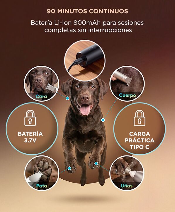 Corte silencioso para mascotas sensibles: La Máquina de Cortar Pelo para Mascotas GADNIC CORTPE74 incorpora motor de 3W con dos velocidades que reduce vibraciones y ruido, ayudando a que perros y gatos permanezcan tranquilos durante el corte. Autonomía real para sesiones completas: Su batería Li-Ion...