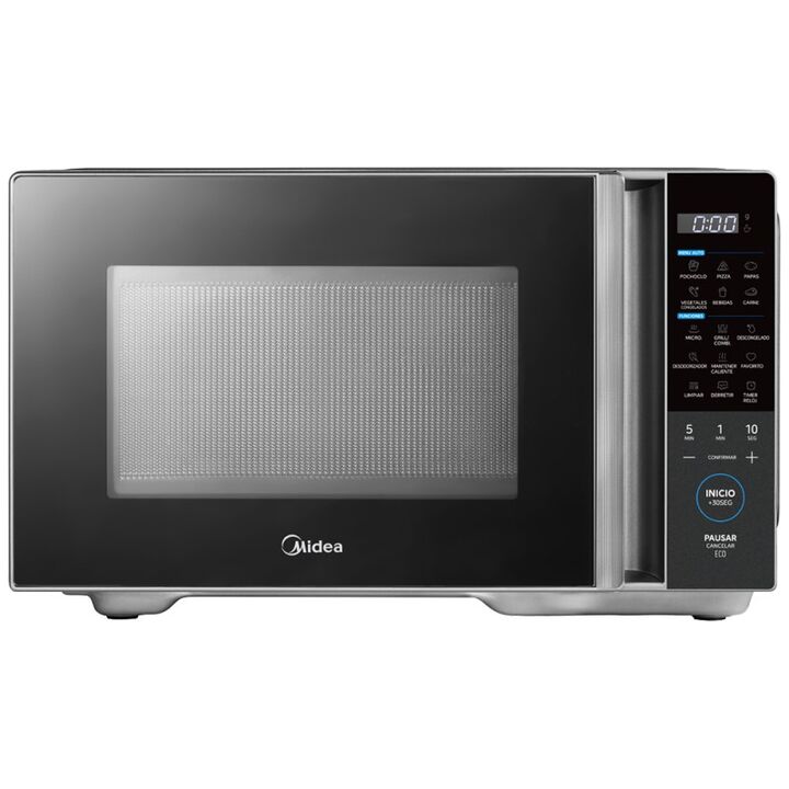 MICROONDAS 29 EG128GAR1 900W DIGITAL NEGRO MIDEA -Capacidad Neta 16 litros -Capacidad Bruta 29 litros -Potencia 900W -Color: Gris -Control Membrane -Funcion Grill -Display: Blanco -Eficiencia Energetica: B -Puerta manual -Dimensiones Packaging (WxDxH)mm 541*443*319mm -Dimesiones producto (WxDxH)mm 4...