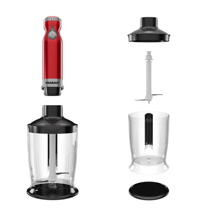 - Dimensiones: 7 cm (Ancho) - 7 cm (Prof) - 41 cm (Alto) - Potencia: 1000 W - Capacidad: 1250 ml (Vaso picador) - 800 ml (Vaso medidor) - Hasta 17.000 RPM - Longitud del cable: 1.3 m - 5 velocidades - Cuchillas anti splash aptas para picar hielo - Incluye: Pie de licuado de acero inoxidable - Vaso p...